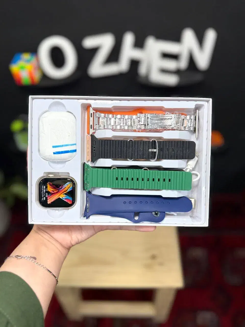 ساعت هوشمند+هفت عدد بند+ شارژر وایرلس + ایرپاد