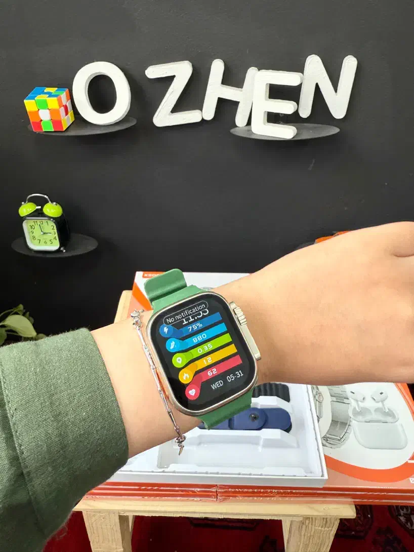 ساعت هوشمند+هفت عدد بند+ شارژر وایرلس + ایرپاد